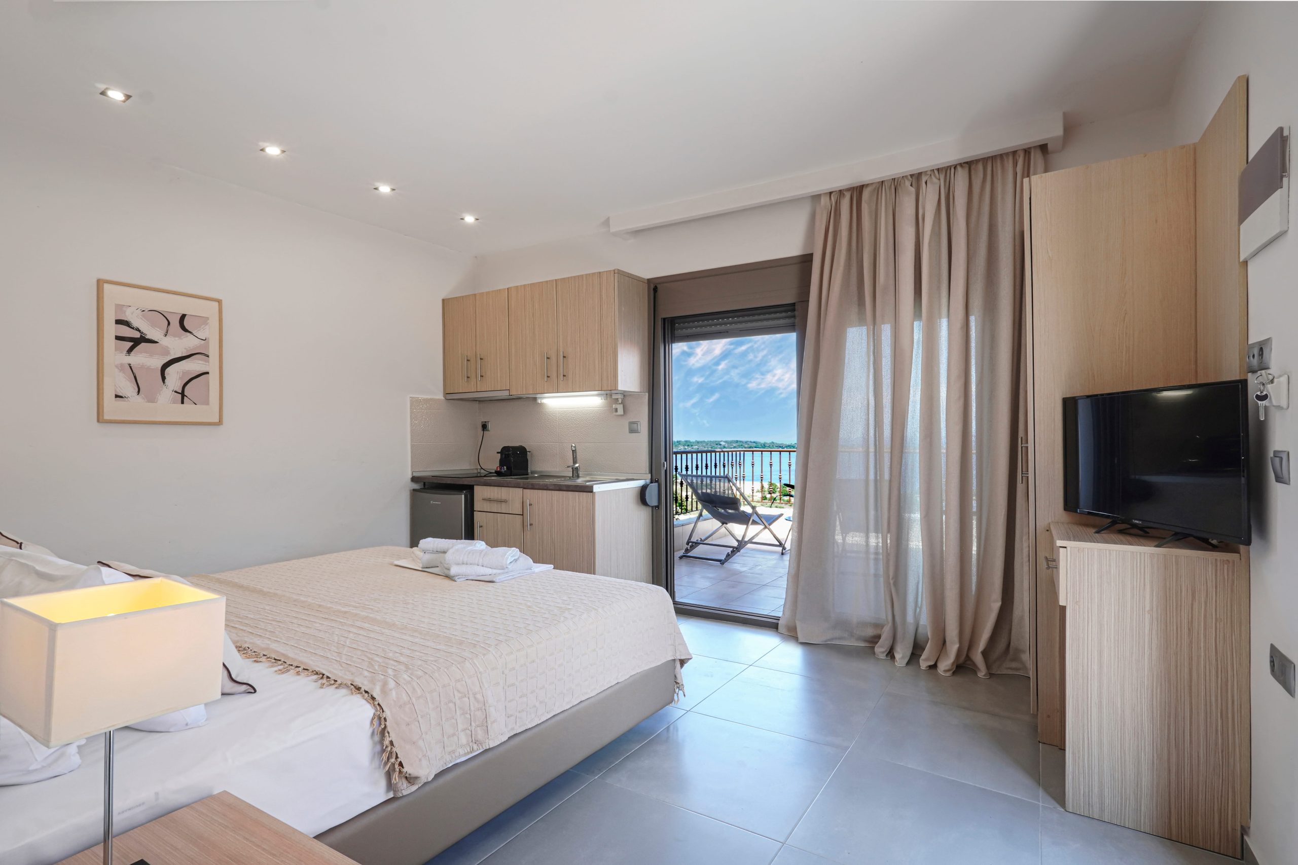 Απολαύστε άνεση και χαλάρωση σε αυτό το κομψό στούντιο, ιδανικό για δύο επισκέπτες. Διαθέτει ένα πολυτελές king-size κρεβάτι και έναν προσεγμένο χώρο 25 τ.μ. που συνδυάζει ζεστασιά και μοντέρνα αισθητική. Χαλαρώστε στο ιδιωτικό μπαλκόνι με υπέροχη θέα στη θάλασσα και το βουνό, ενώ έχετε στη διάθεσή σας πλήρως εξοπλισμένη μικρή κουζίνα, κλιματισμό και γρήγορο Wi-Fi για μια άνετη και αξέχαστη διαμονή στη μαγευτική Βουρβουρού.