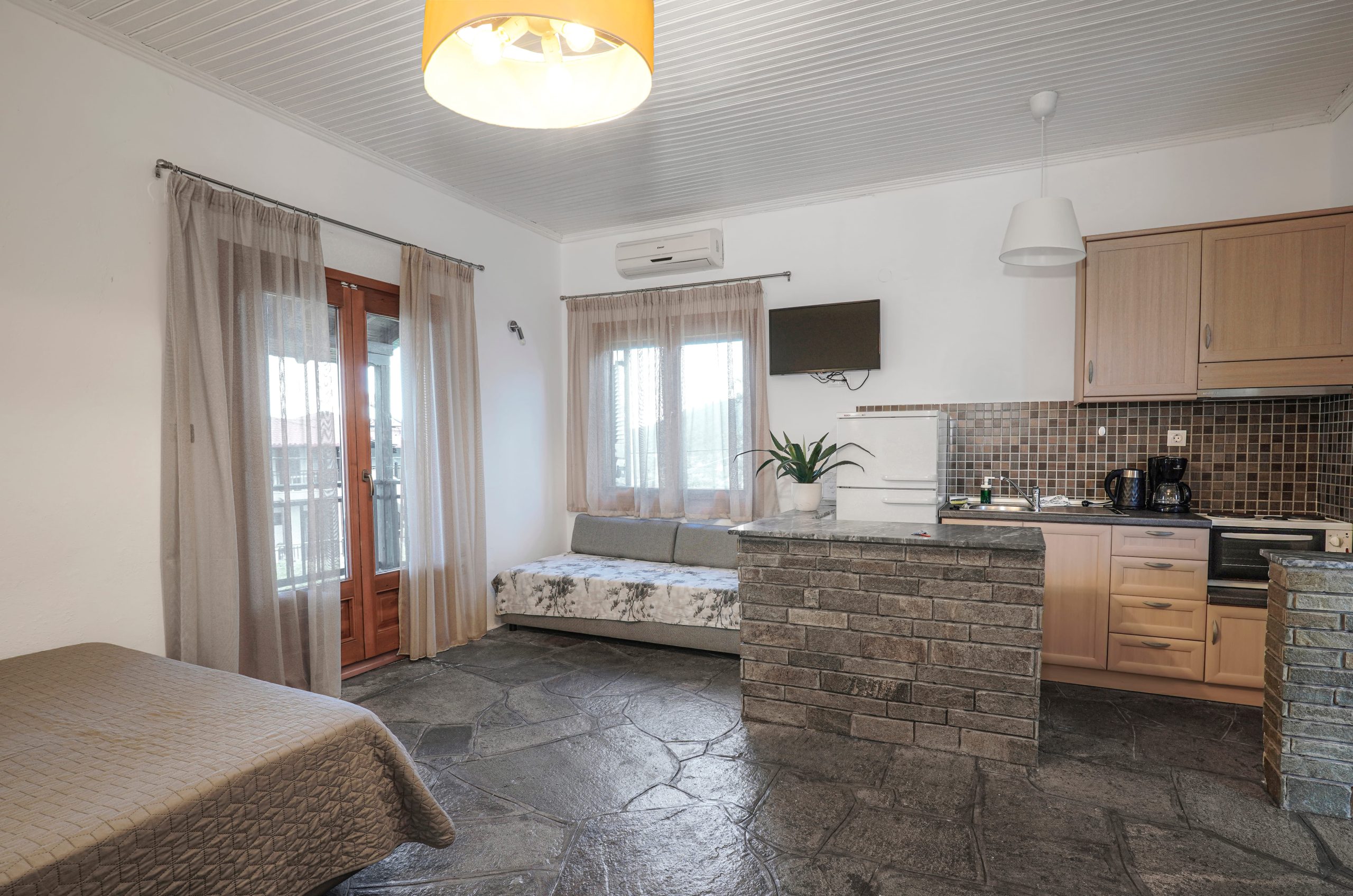 Step out onto your private balcony and take in the beautiful views of the sea and surrounding nature, creating the perfect setting for peaceful moments throughout the day. The studio also includes a fully equipped kitchenette, air conditioning, free Wi-Fi, and modern amenities to ensure a convenient and enjoyable stay.